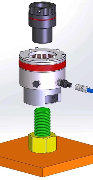 Tensioning requires longer bolts, and a seating area on the assembly around the nut. Tensioning can be done using detachable Bolt Tensioners or Hydraulic Nuts.